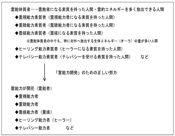*スピリチュアリズム普及会第3ホームページ 「スピリチュアリズムの心霊現象論 第5部 霊能力と霊能者 (1)霊能力と霊能者について 3)霊能者としての特殊な身体条件」より引用(図の掲載についてはスピリチュアリズム普及会より許可を得ています。)